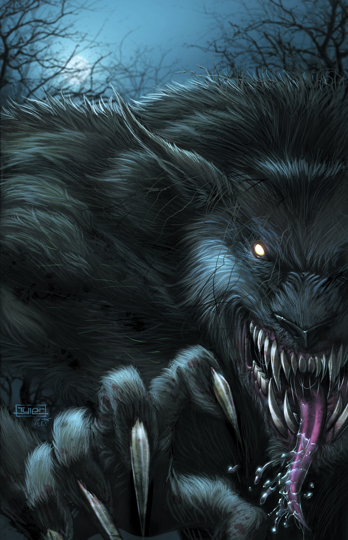 Download hd pics photos 3d animated wolf horror painting night for desktop or mobile device.